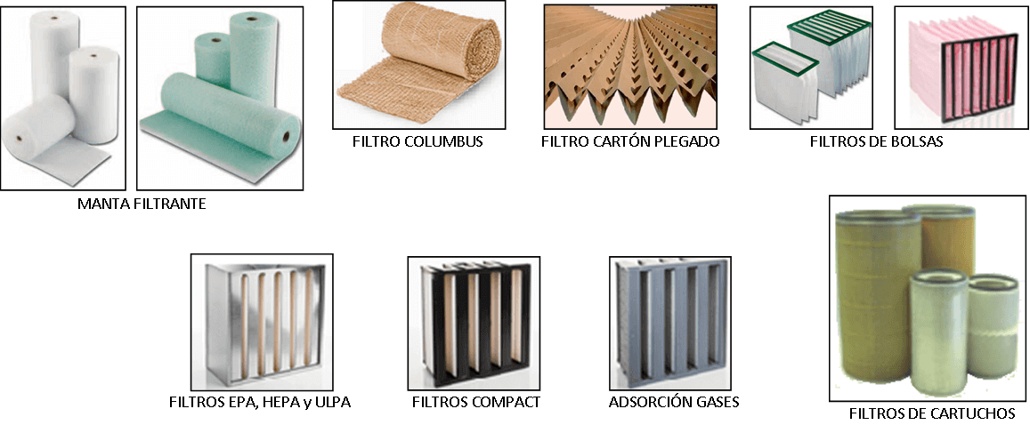 Complete range of air filters and filtration systems, for air extraction or air supply in booths, walls and painting areas. Filter cartridges for blasting and shot blasting dust particles, wet and dry pigment retention systems.Activated carbon filters etc…